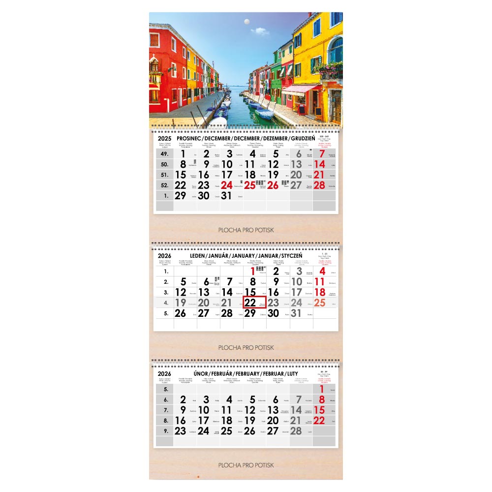 Drevený trojmesačný kalendár Trio Wood Benátky skládaný český so špirálou 2026 - sivý