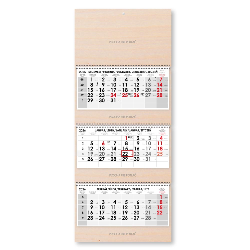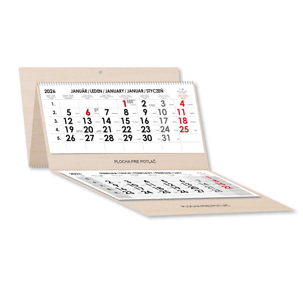 Drevený trojmesačný kalendár Trio Wood skládaný slovenský so špirálou 2026 - sivý