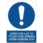 DZIECI DO LAT 10 TYLKO POD OPIEKĄ OSÓB DOROSŁYCH - znak BHP, naklejka A4