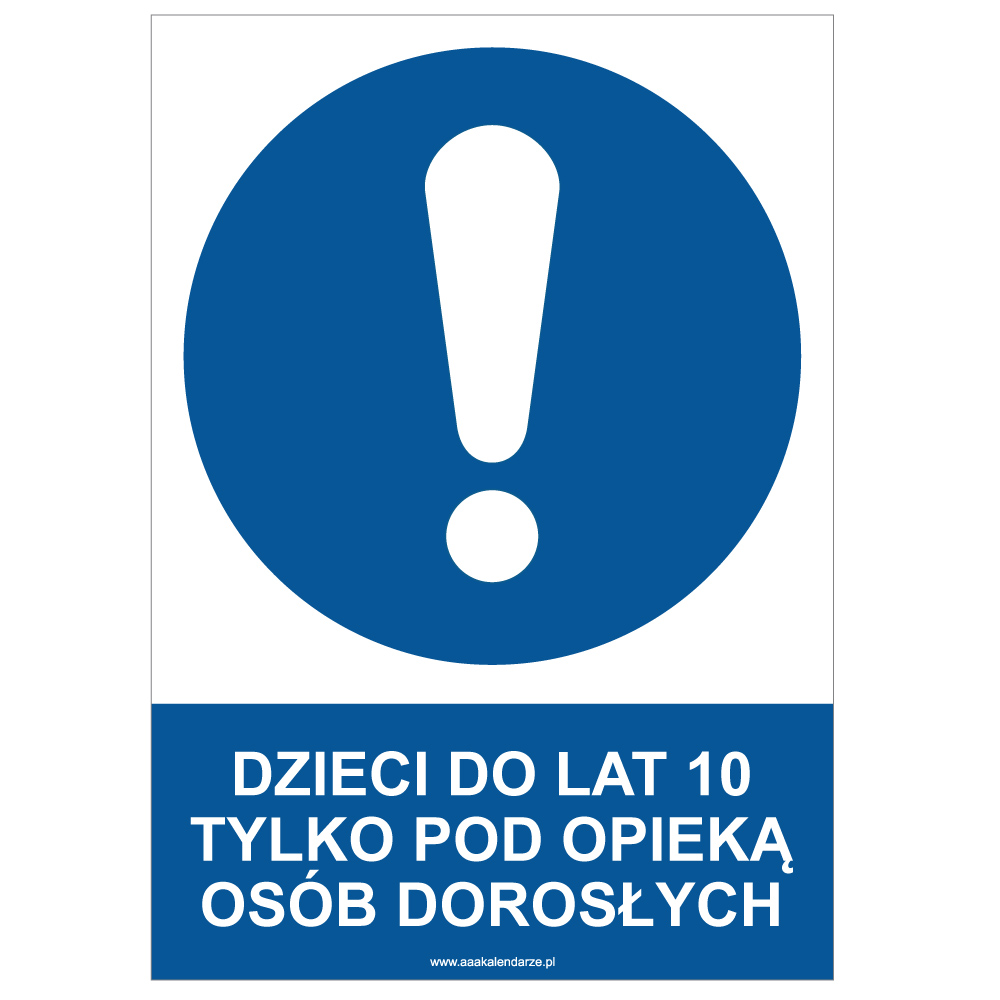 DZIECI DO LAT 10 TYLKO POD OPIEKĄ OSÓB DOROSŁYCH - znak BHP, płyta PVC A4, 0,5 mm