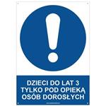 DZIECI DO LAT 3 TYLKO POD OPIEKĄ OSÓB DOROSŁYCH - znak BHP, naklejka A4