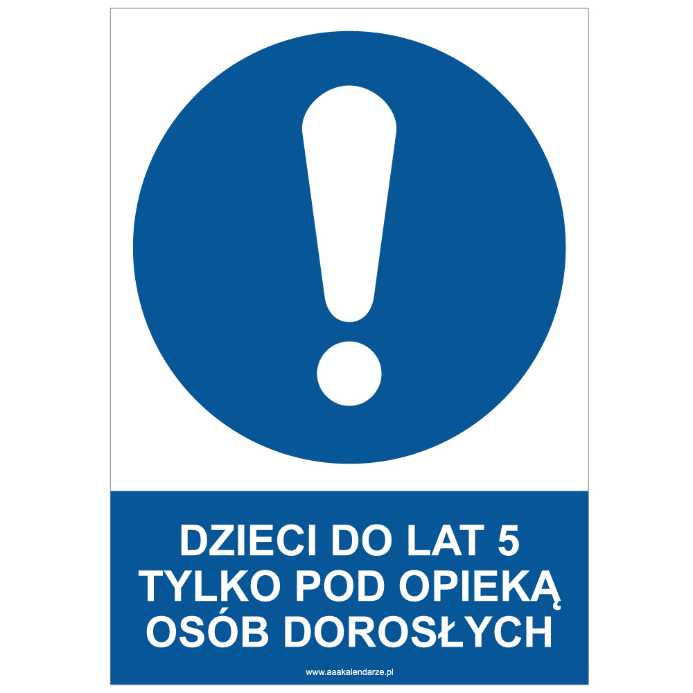 DZIECI DO LAT 5 TYLKO POD OPIEKĄ OSÓB DOROSŁYCH - znak BHP, płyta PVC A4, 2 mm