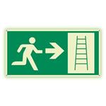 Ewakuacyjna drabina - kierunek w prawo - fotoluminescencyjny znak, płyta PVC 1 mm 300x150 mm