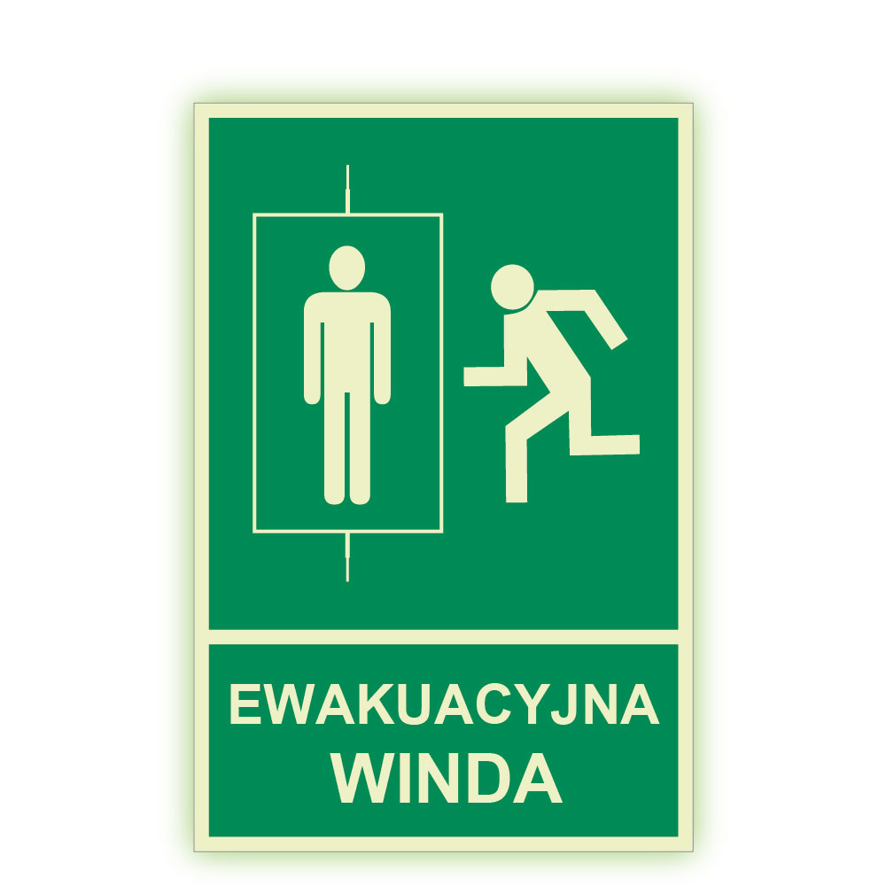Ewakuacyjna winda - fotoluminescencyjny znak, płyta PVC 1 mm 150x200 mm