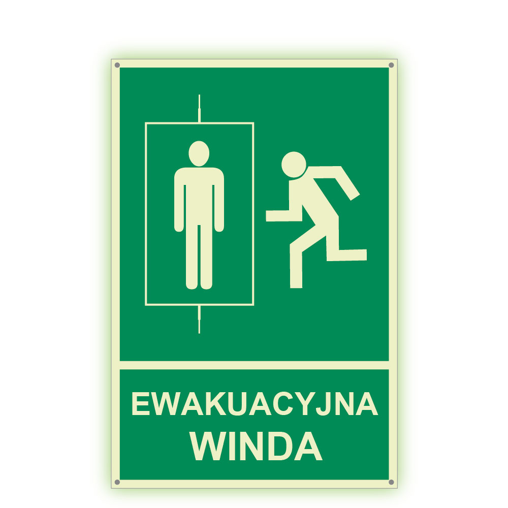 Ewakuacyjna winda - fotoluminescencyjny znak z dziurkami, płyta PVC 2 mm 150x200 mm