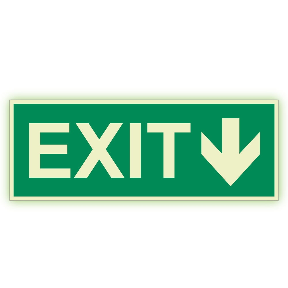 EXIT ze strzałką - fotoluminescencyjny znak, płyta PVC 2 mm 300x120 mm