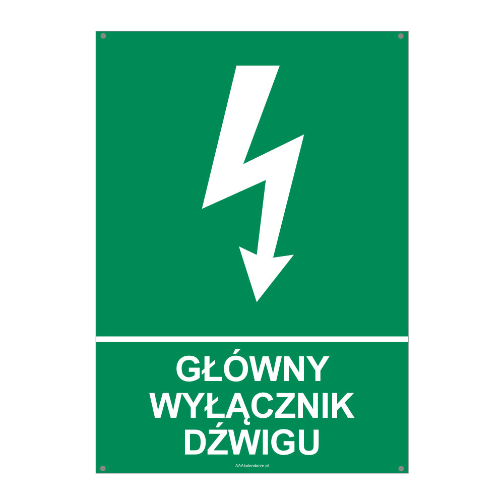 GŁÓWNY WYŁĄCZNIK DŹWIGU, płyta PVC 2 mm z dziurkami, 210x297 mm