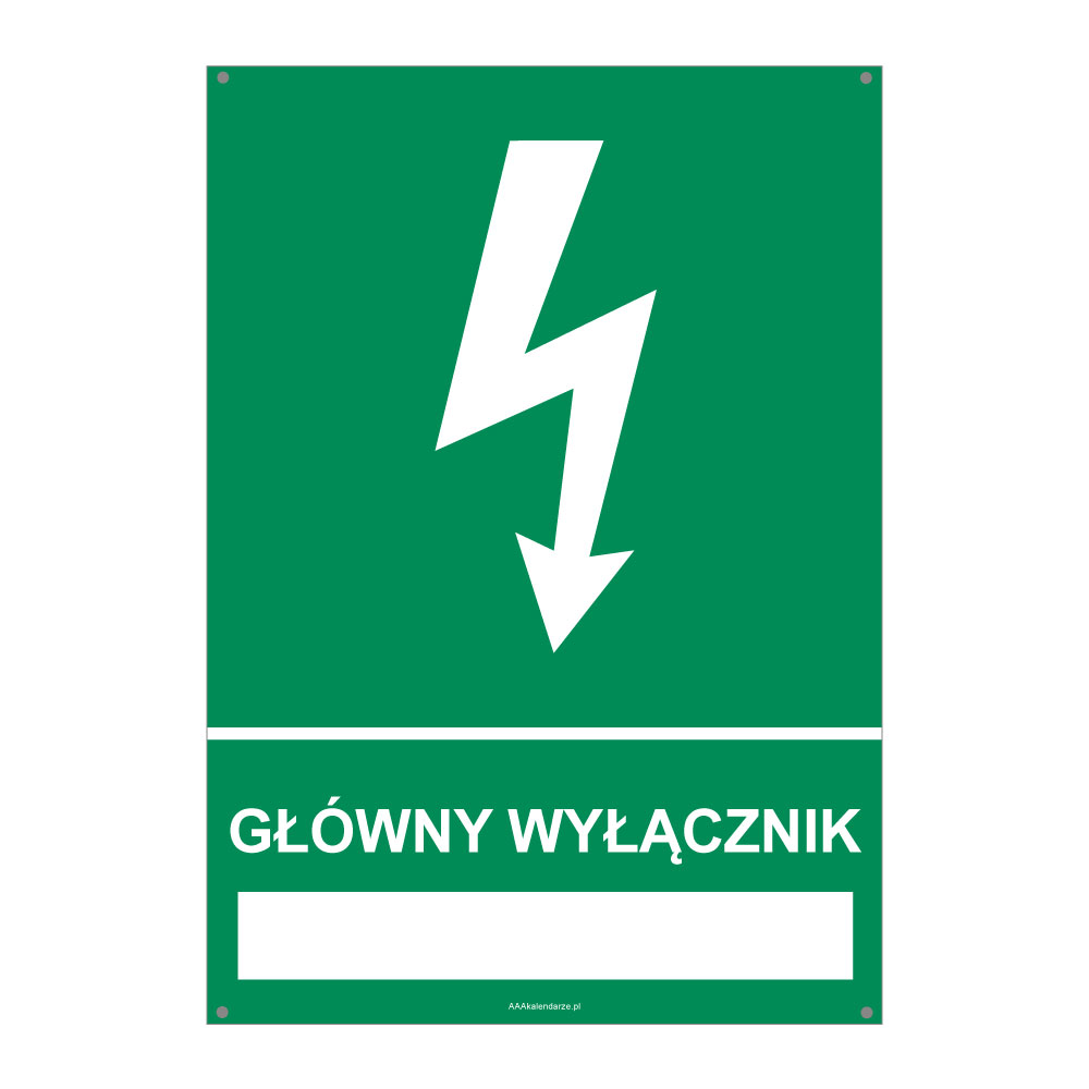 GŁÓWNY WYŁĄCZNIK ……………….., płyta PVC 2 mm z dziurkami, 210x297 mm