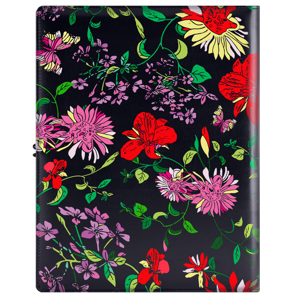 GEP DESIGN konferenčné dosky v darčekovej krabičke čiernej - kvety s linkovaným blokom - recyklovaná koženka