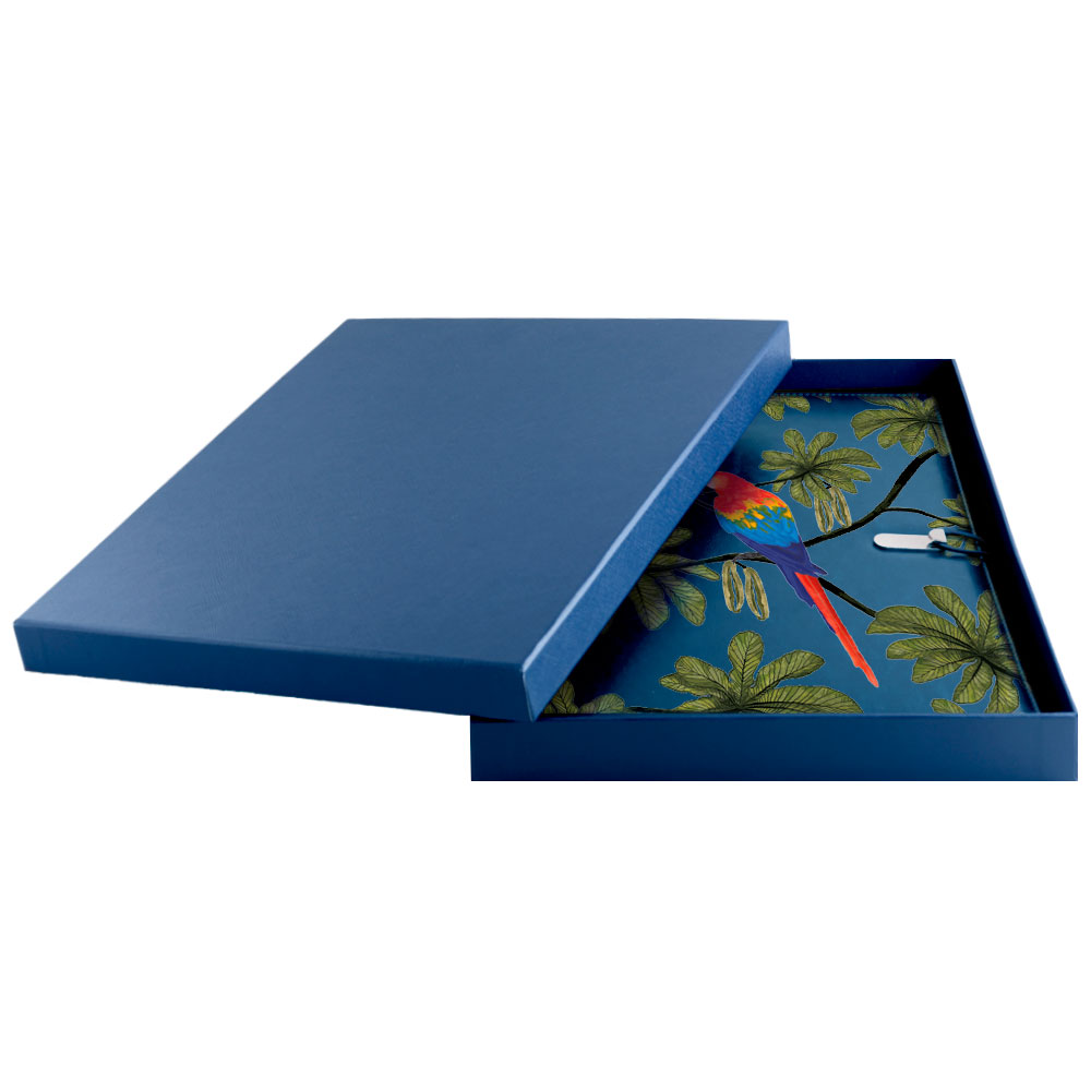 GEP DESIGN konferenčné dosky v darčekovej krabičke modrej - Papagáj s linkovaným blokom