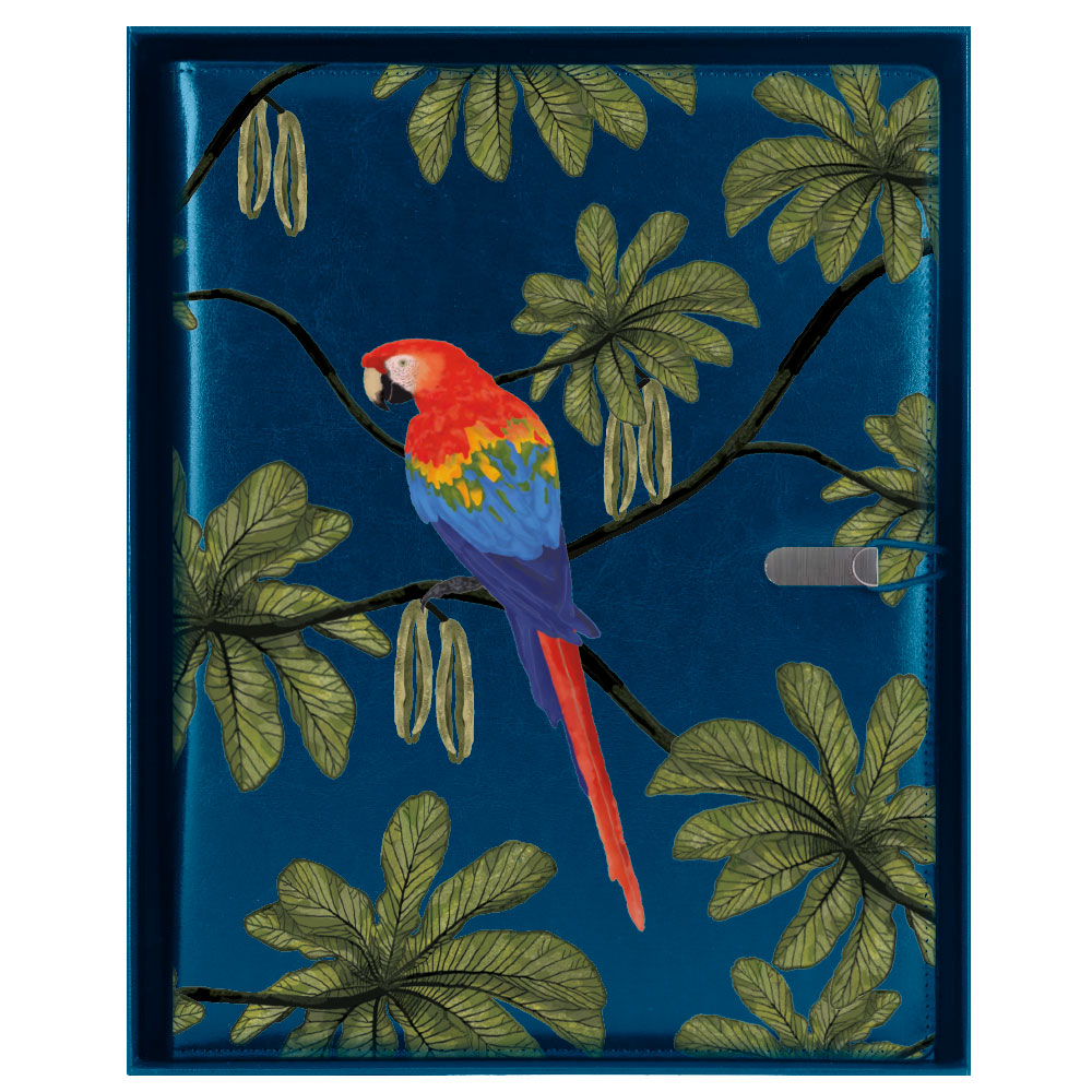 GEP DESIGN konferenčné dosky v darčekovej krabičke modrej - Papagáj so štvorčekovým blokom blokom