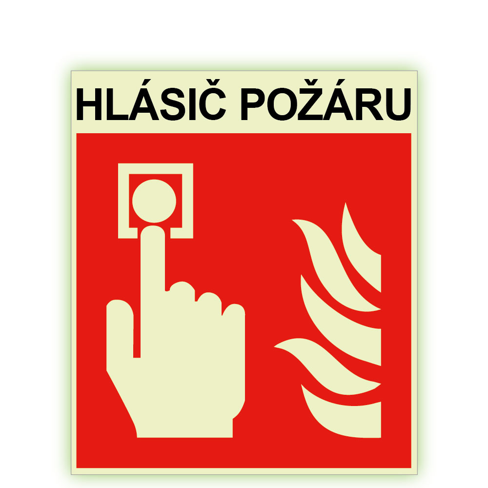 Hlásič požáru s textem - fotoluminiscenční tabulka, plast 2 mm 150x175mm