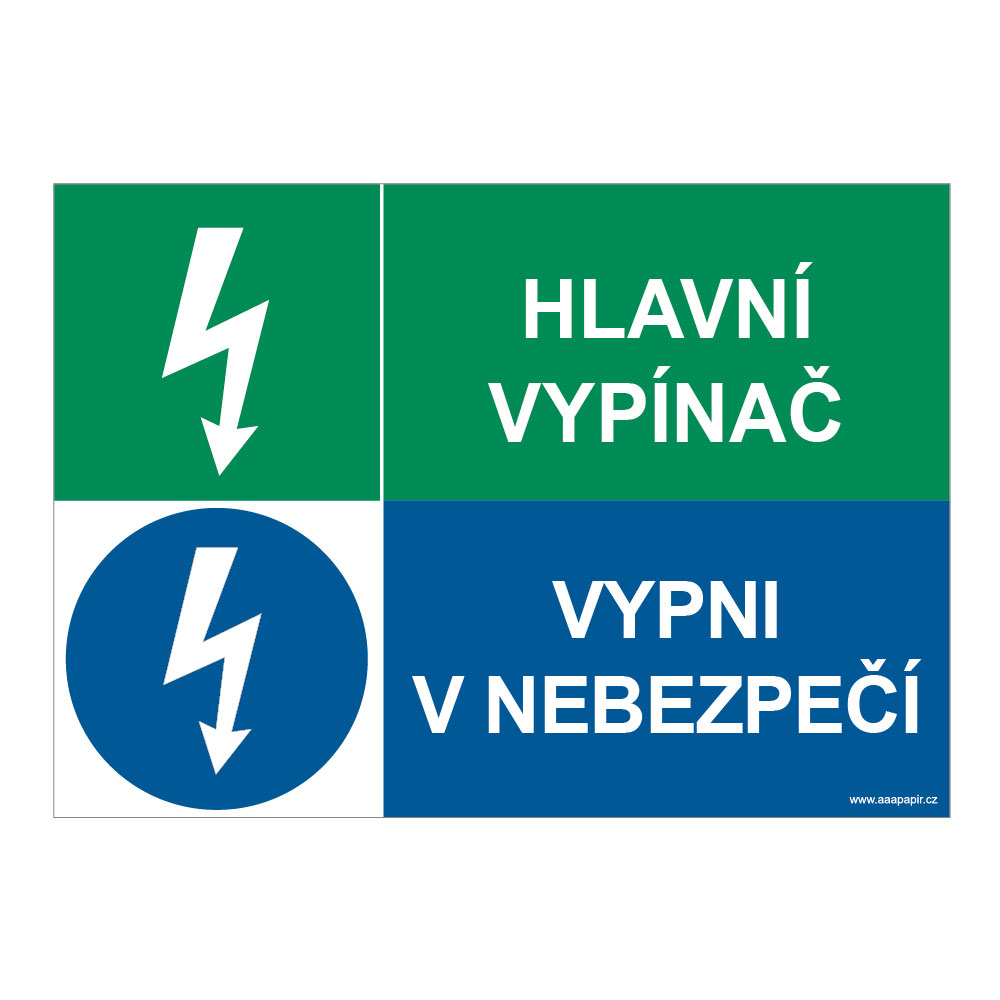 HLAVNÍ VYPÍNAČ - VYPNI V NEBEZPEČÍ, KOMBINACE, plast 2 mm, A4