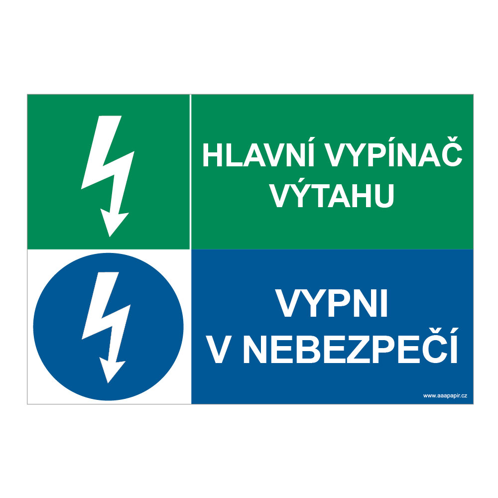 HLAVNÍ VYPÍNAČ VÝTAHU - VYPNI V NEBEZPEČÍ, KOMBINACE, plast 1 mm, A4