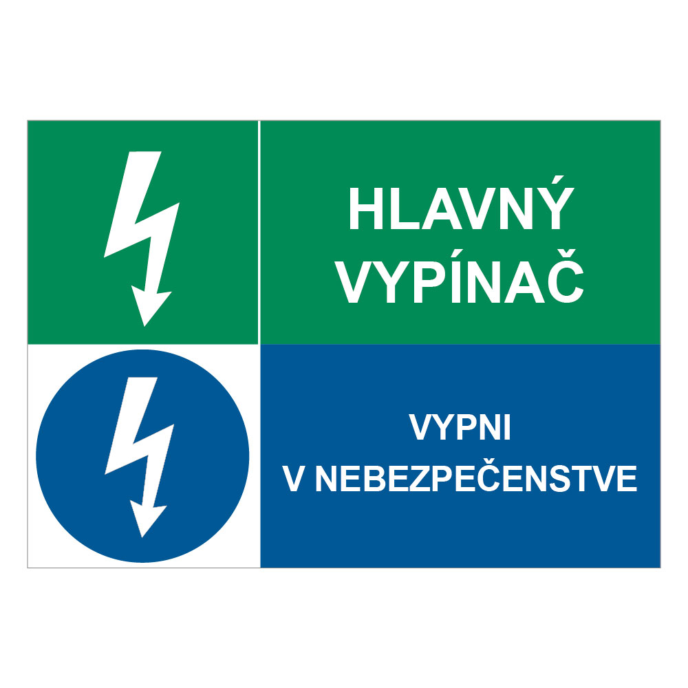 Hlavný vypínač-Vypni v nebezpečenstve, kombinácia,plast 2mm,297x210mm