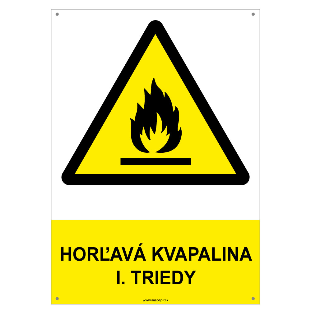 Horľavá kvapalina I. triedy - bezpečnostná tabuľka s dierkami, plast 2 mm - A4