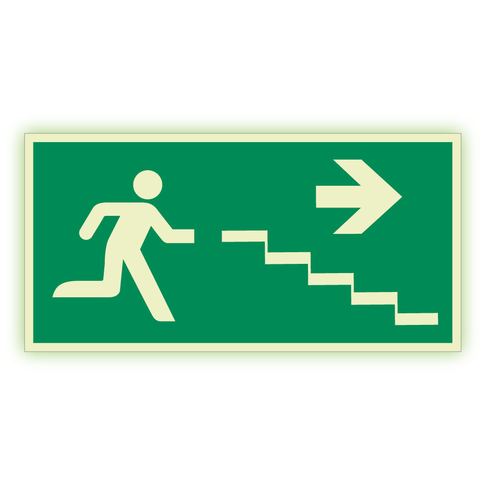 Kierunek do wyjścia drogi ewakuacyjnej... - fotoluminescencyjny znak, naklejka 300x150 mm