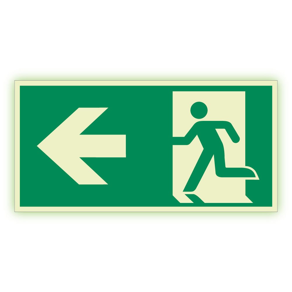Kierunek do wyjścia drogi ewakuacyjnej w lewo - fotoluminescencyjny znak, naklejka 400x200 mm