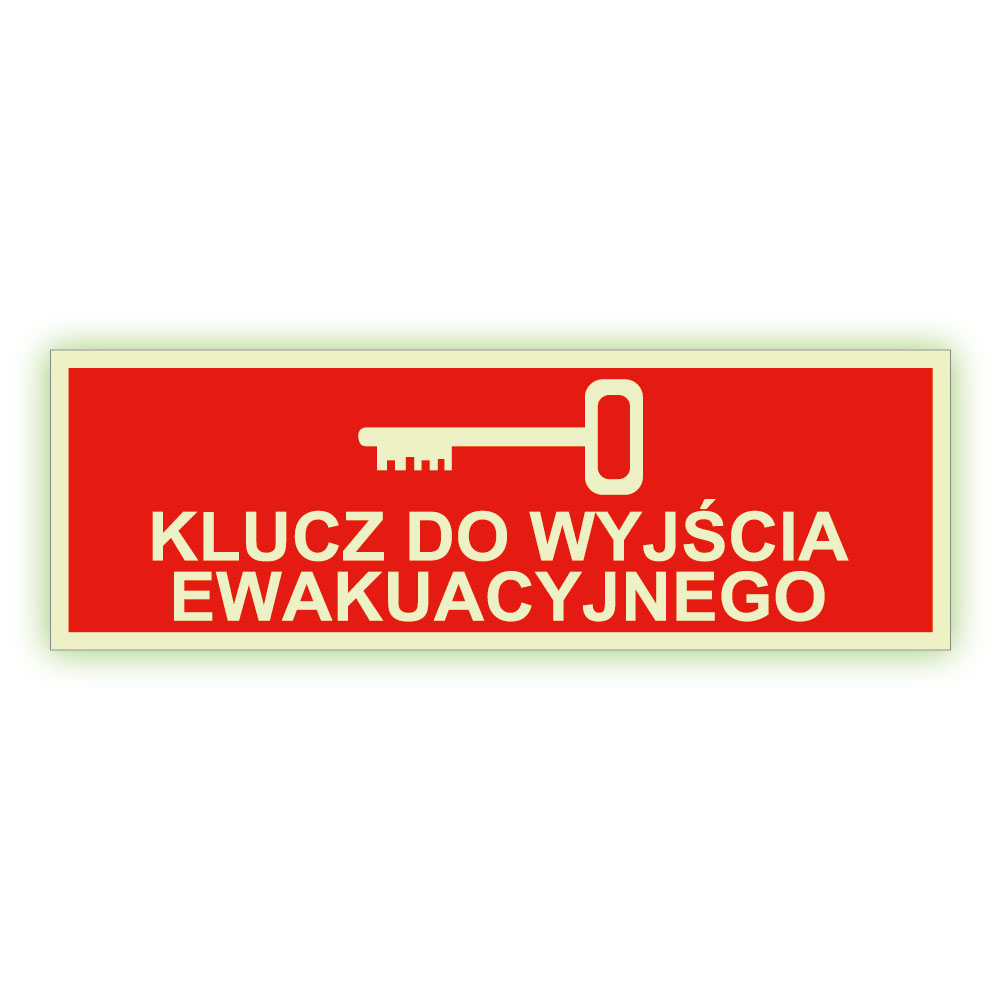 Klucz do wyjścia ewakuacyjnego - fotoluminescencyjny znak, naklejka 300x75 mm
