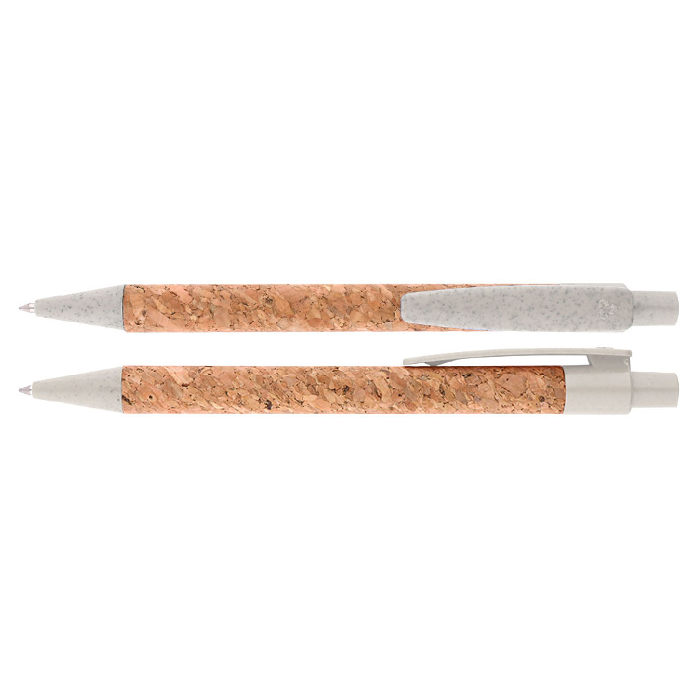 Guľôčkové pero je vyrobené z ekologicky šetrných materiálov - telo je z prírodného korku a klip s koncovkami zo zmesi 50% plastu a zvyšok prírodnej slamy.