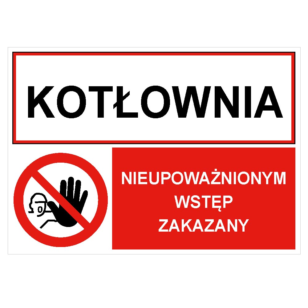 KOTŁOWNIA - NIEUPOWAŻNIONYM WSTĘP ZAKAZNY, ZNAK ŁĄCZONY, naklejka 210x148 mm
