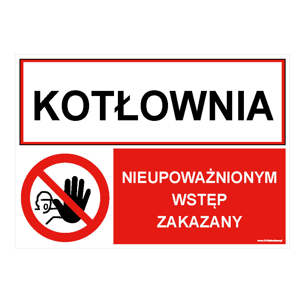KOTŁOWNIA - NIEUPOWAŻNIONYM WSTĘP ZAKAZNY, ZNAK ŁĄCZONY, naklejka 297x210 mm