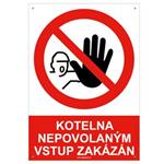 KOTELNA, NEPOVOLANÝM VSTUP ZAKÁZÁN - bezpečnostní tabulka, plast A5, 0,5 mm