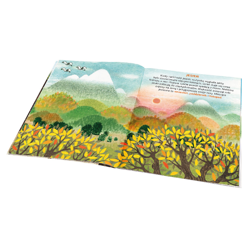 Dvostranske prizore lahko otroci dopolnijo z obilico ljubkih nalepk, bodisi po navodilih bodisi po lastni domišliji. Poleg tega se bodo v knjigi naučili veliko novega in zanimivega o jeseň, z nalepkami pa si lahko okrasijo tudi lastno sliko, sobo ali izdelajo igro spomin!