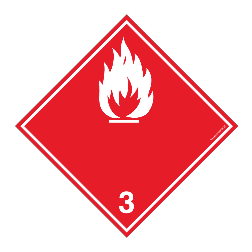 MATERIAŁY CIEKŁE ZAPALNE PODKLASA 3 BIAŁY SYMBOL, płyta PVC 2 mm, 100x100 mm
