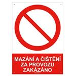 MAZÁNÍ A ČIŠTĚNÍ ZA PROVOZU ZAKÁZÁNO - bezpečnostní tabulka, plast A5, 2 mm