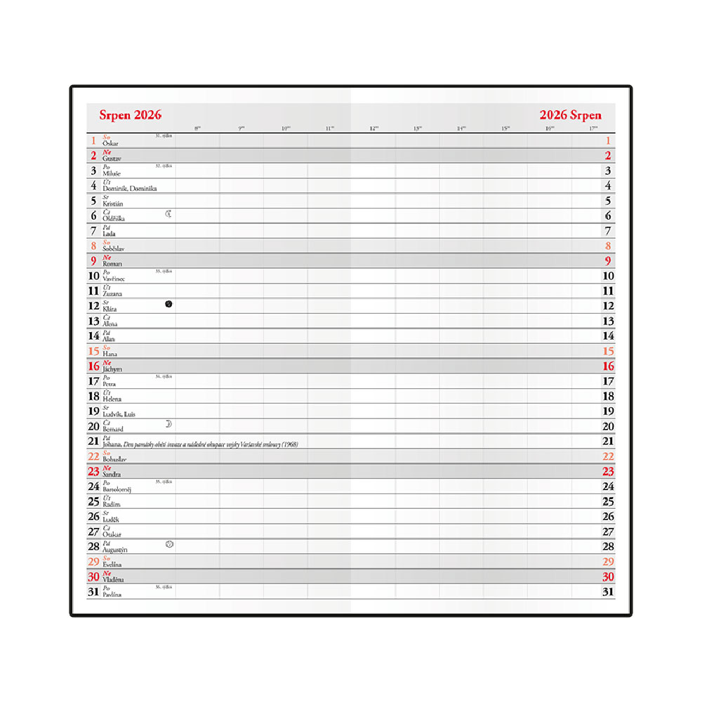 Kalendárium obsahuje: