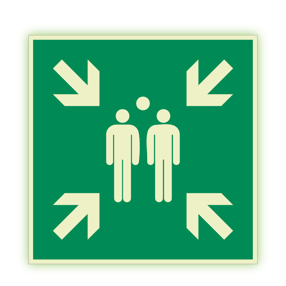 Miejsce zbiórki do ewakuacji - fotoluminescencyjny znak, naklejka 200x200 mm