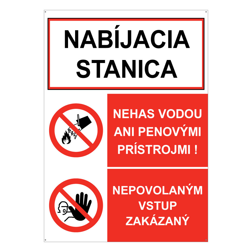 Nabíjacia stanica-Nehas vodou-Nepovolaným vstup zakázaný, kombinácia, plast 2mm s dierkami-148x210mm
