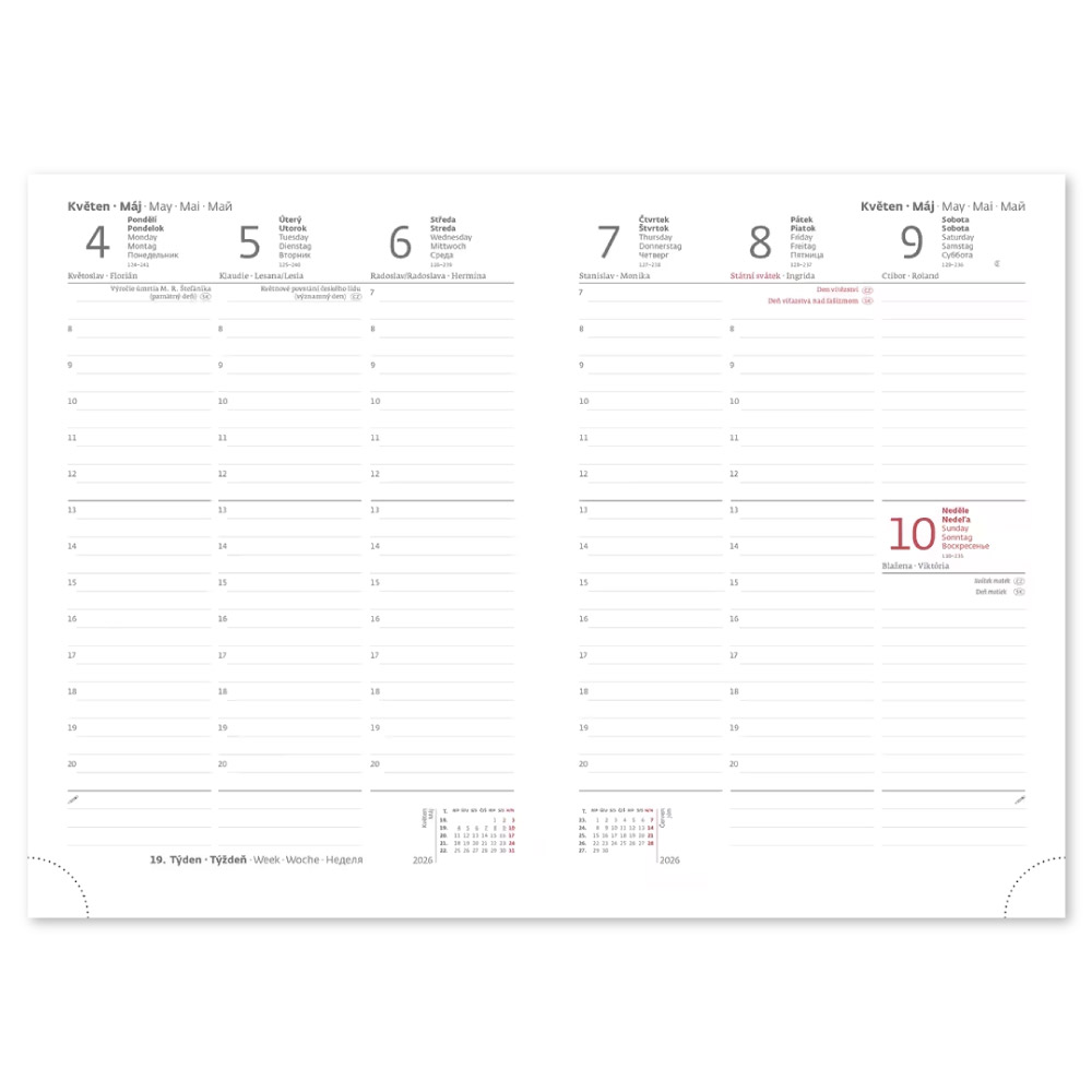 medzinárodné sviatky, ročný výhľad, týždenný layout, adresár,