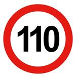 Najvyššia obmedzená/konštrukčná rýchlosť vozidla 110 km, bezpečnostná tabuľka, plast 2 mm - kruh 20 cm
