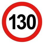 Najvyššia obmedzená/konštrukčná rýchlosť vozidla 130 km, bezpečnostná tabuľka, samolepka - kruh 20 cm
