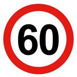 Najvyššia obmedzená/konštrukčná rýchlosť vozidla 60 km, bezpečnostná tabuľka, plast 0,5 mm - kruh 20 cm