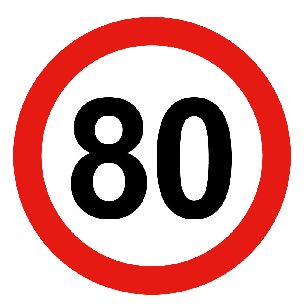 Najvyššia obmedzená/konštrukčná rýchlosť vozidla 80 km, bezpečnostná tabuľka, samolepka - kruh 20 cm