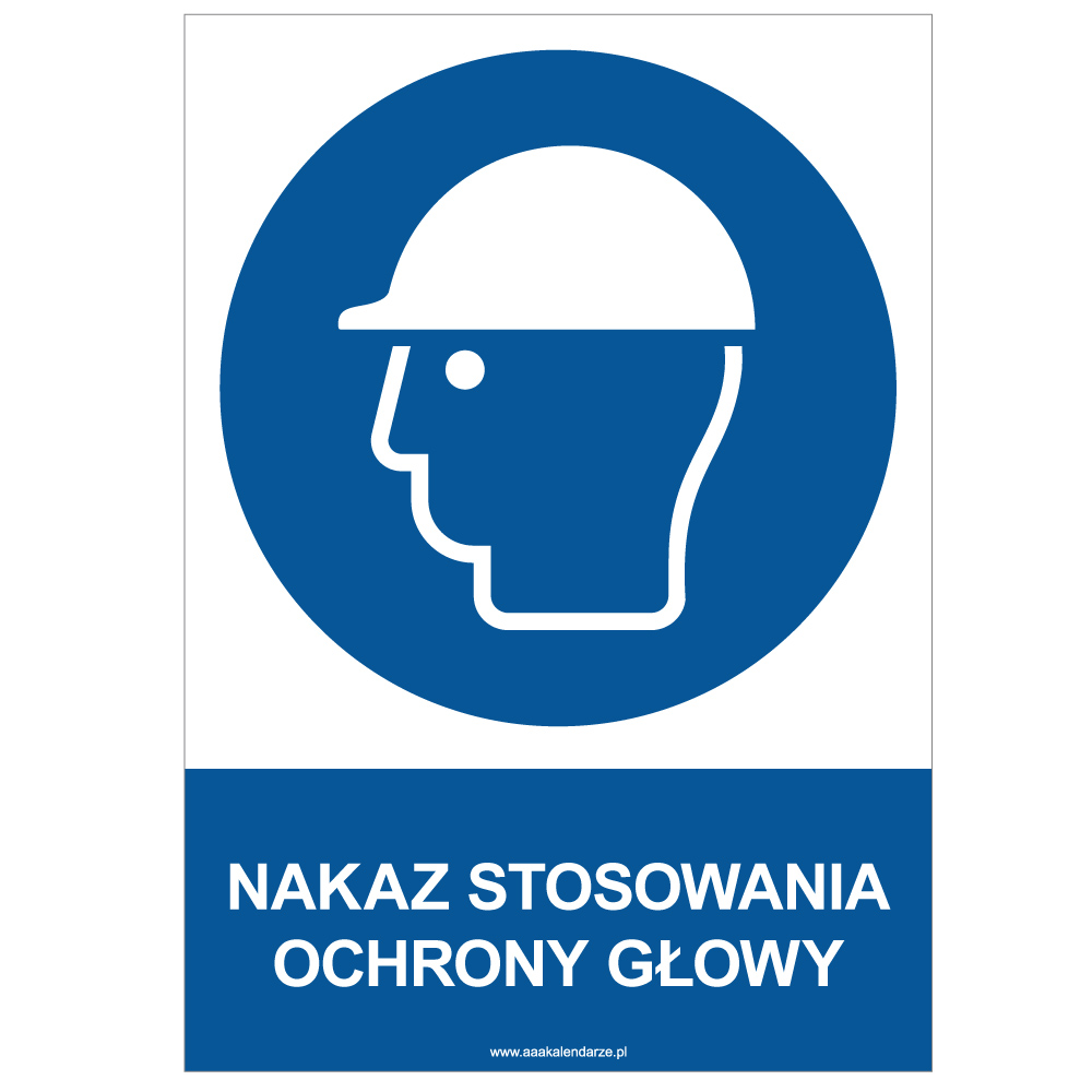 NAKAZ STOSOWANIA OCHRONY GŁOWY - znak BHP, płyta PVC A4, 0,5 mm