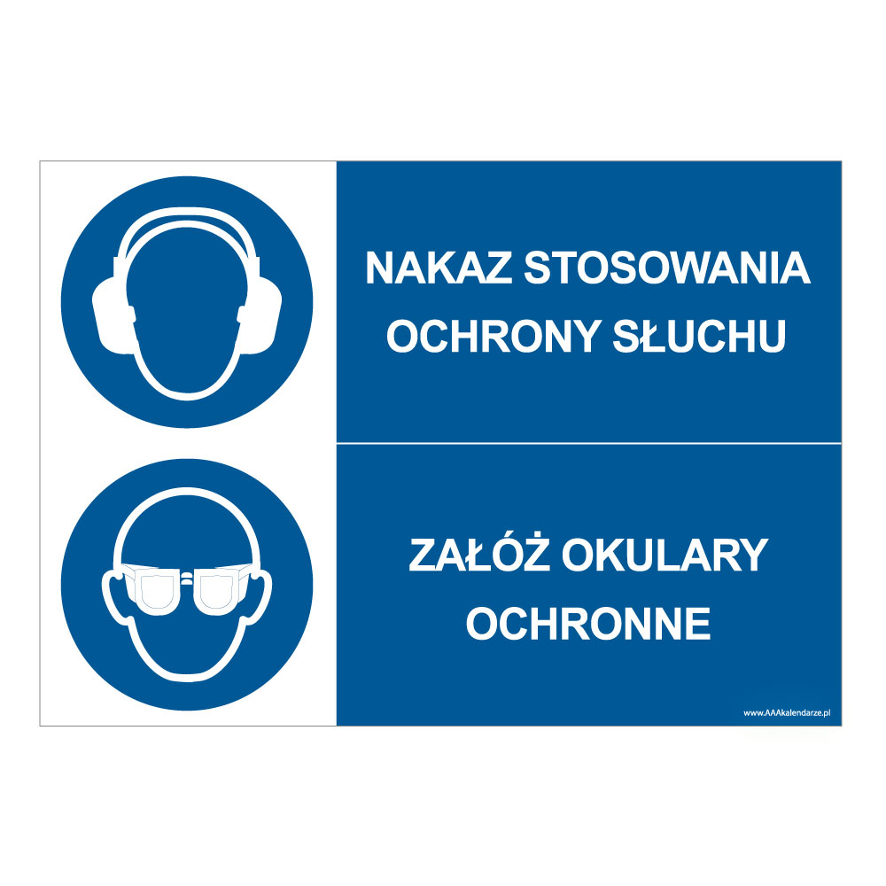 NAKAZ STOSOWANIA OCHRONY SŁUCHU - ZAŁÓŻ OKULARY OCHRONNE, ZNAK ŁĄCZONY, płyta PVC 2 mm, 297x210 mm
