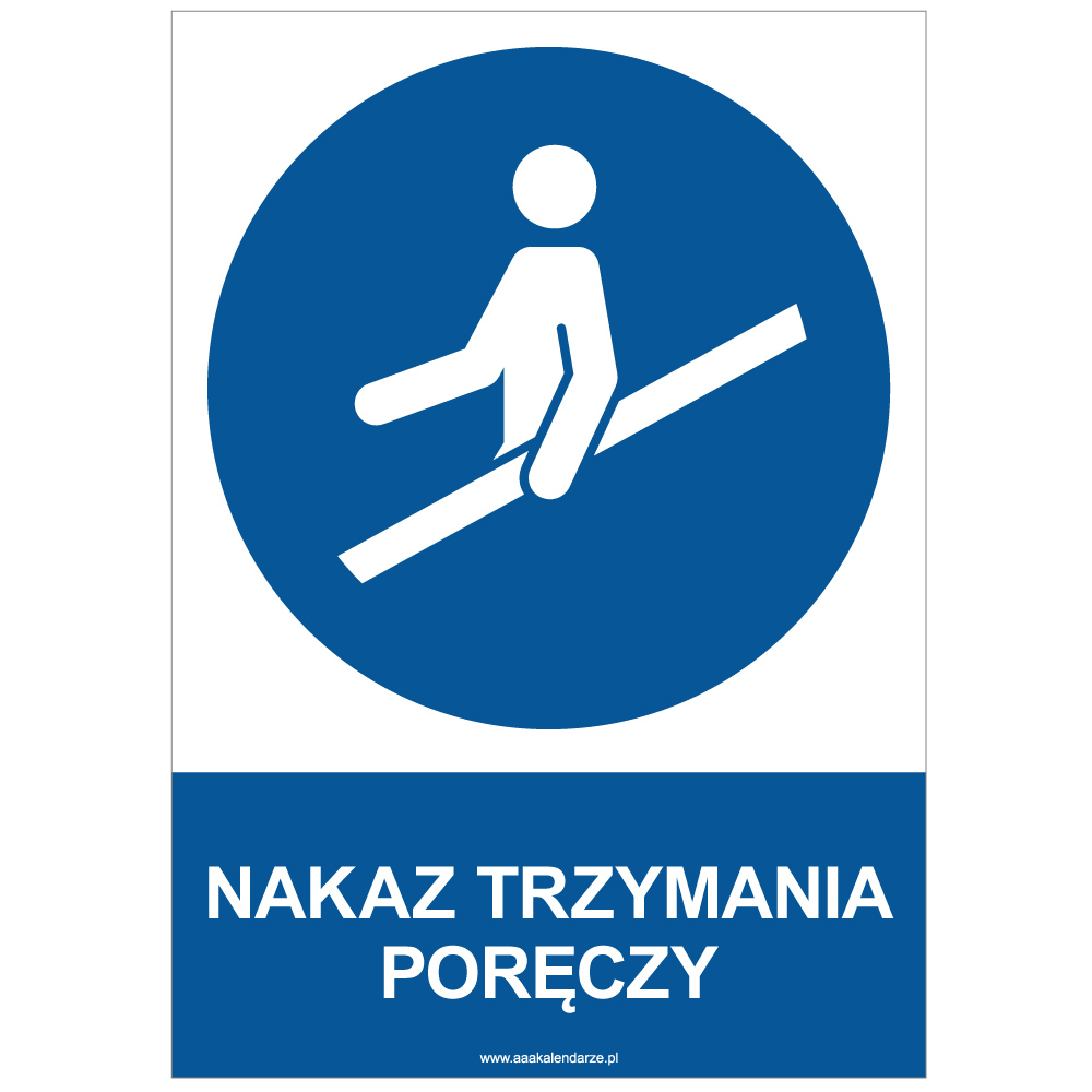 NAKAZ TRZYMANIA PORĘCZY - znak BHP, płyta PVC A4, 2 mm