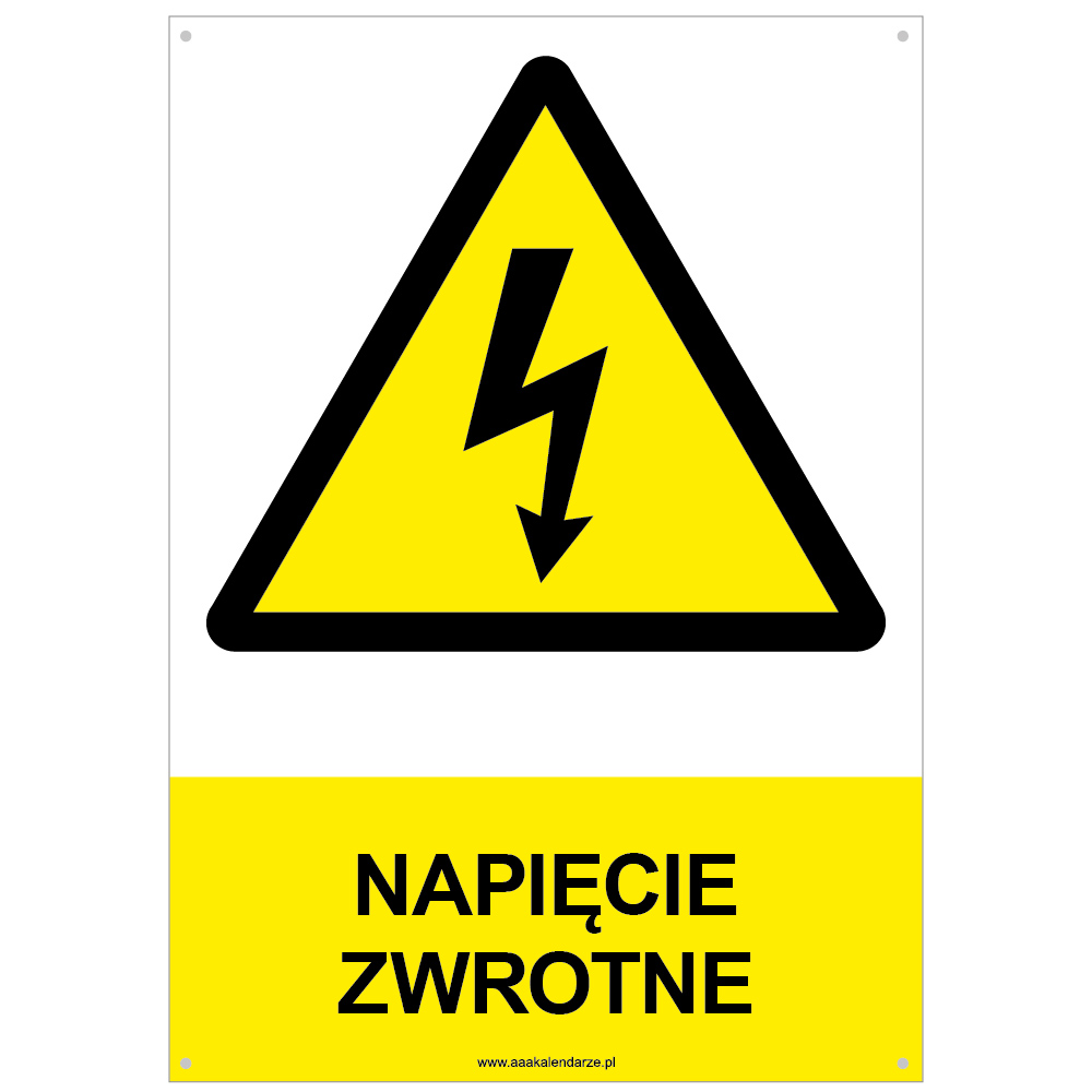 NAPIĘCIE ZWROTNE - znak BHP z dziurkami, płyta PVC A4, 2 mm