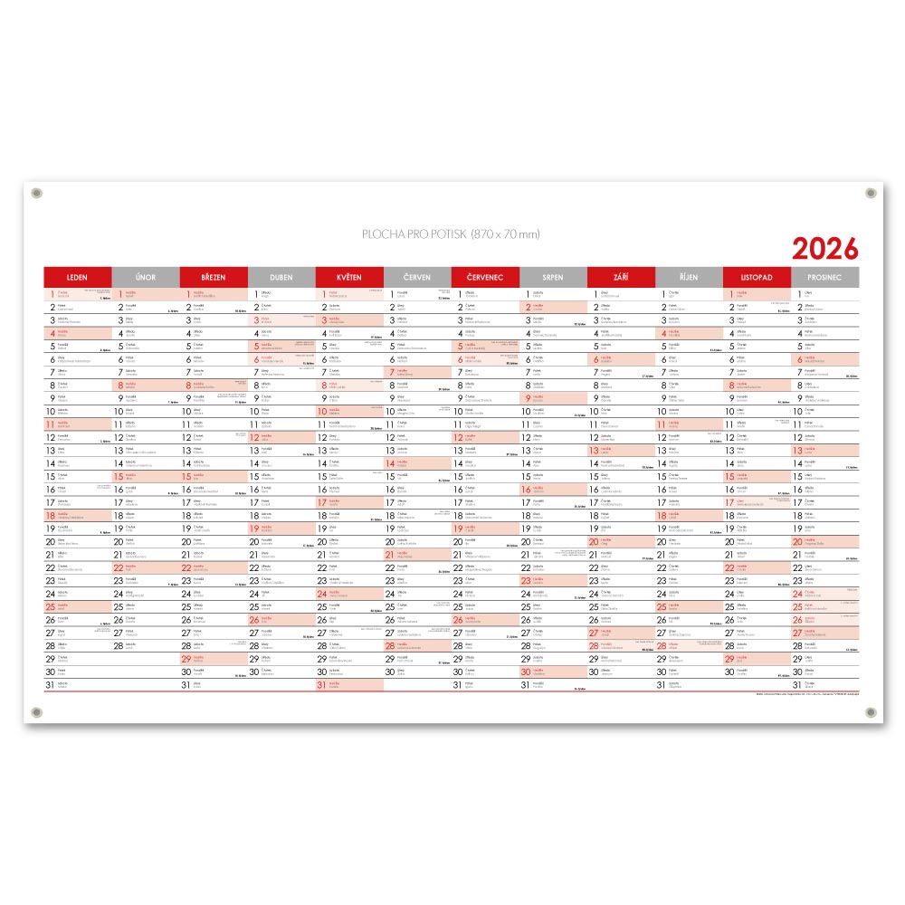 Nástenná plánovacia mapa 2026 CZ s očkami na zavesenie - 100 x 63 cm - červená
