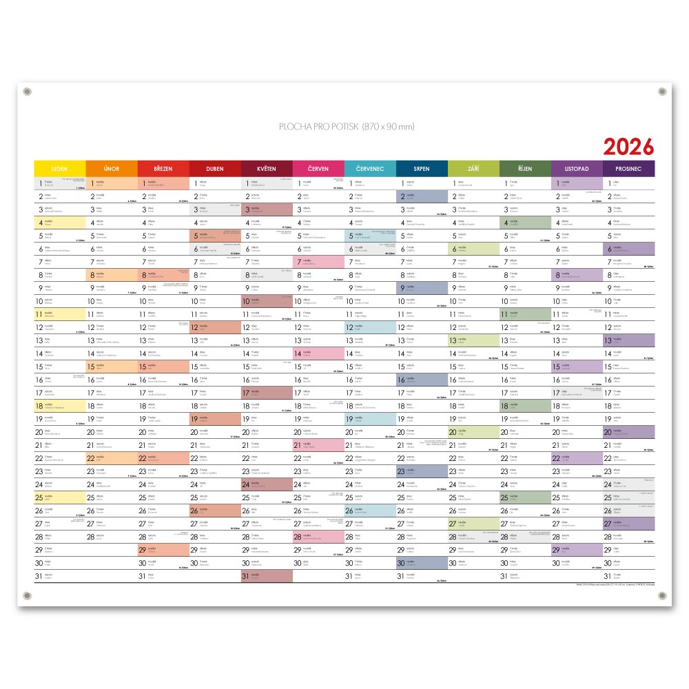 Nástenná plánovacia mapa 2026 CZ s očkami na zavesenie - 100 x 80 cm - farebná