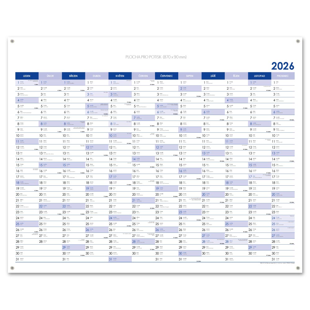 Nástenná plánovacia mapa 2026 CZ s očkami na zavesenie - 100 x 80 cm - modrá