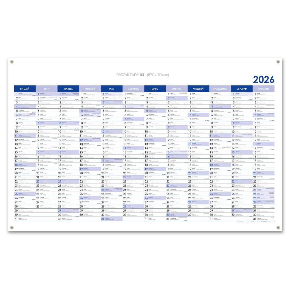 Nástenná plánovacia mapa 2026 PL s očkami na zavesenie - 100 x 63 cm - modrá