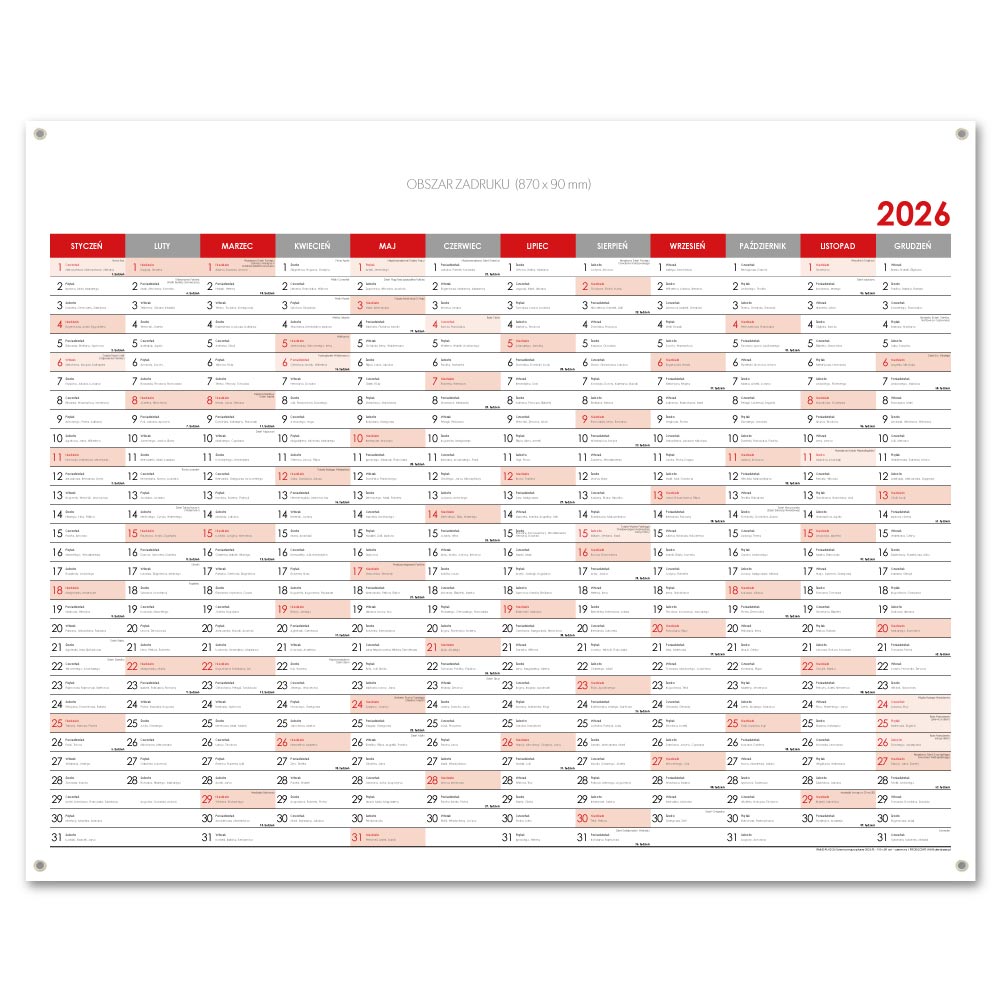 Nástenná plánovacia mapa 2026 PL s očkami na zavesenie - 100 x 80 cm - červená