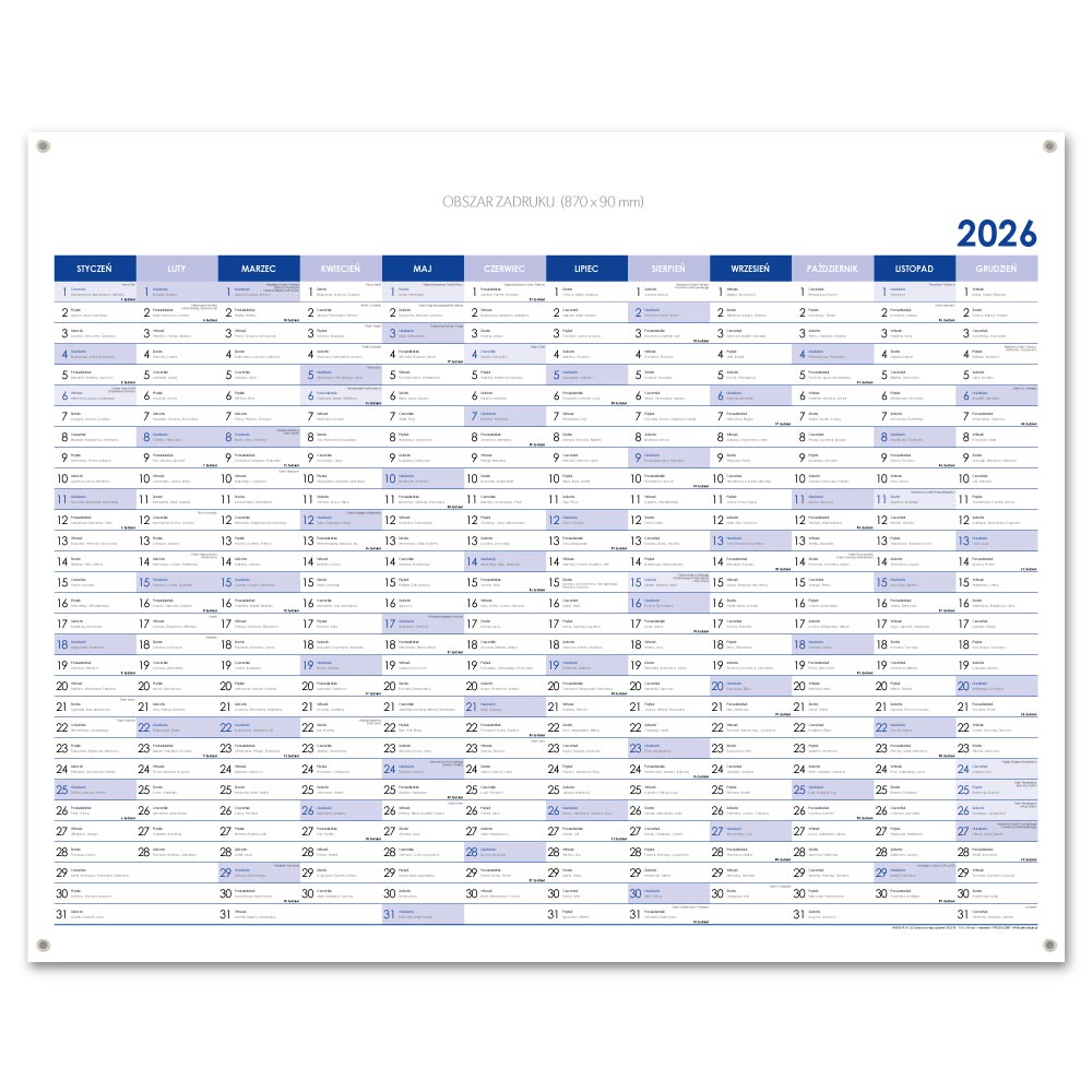 Nástenná plánovacia mapa 2026 PL s očkami na zavesenie - 100 x 80 cm - modrá