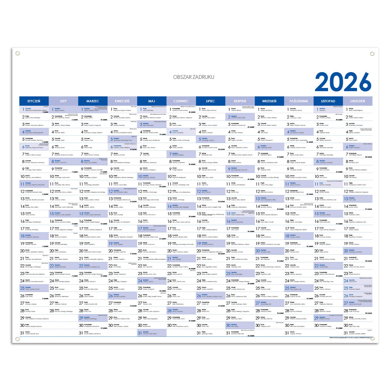 Nástenná plánovacia mapa 2026 PL s očkami na zavesenie - 124 x 100 cm - modrá