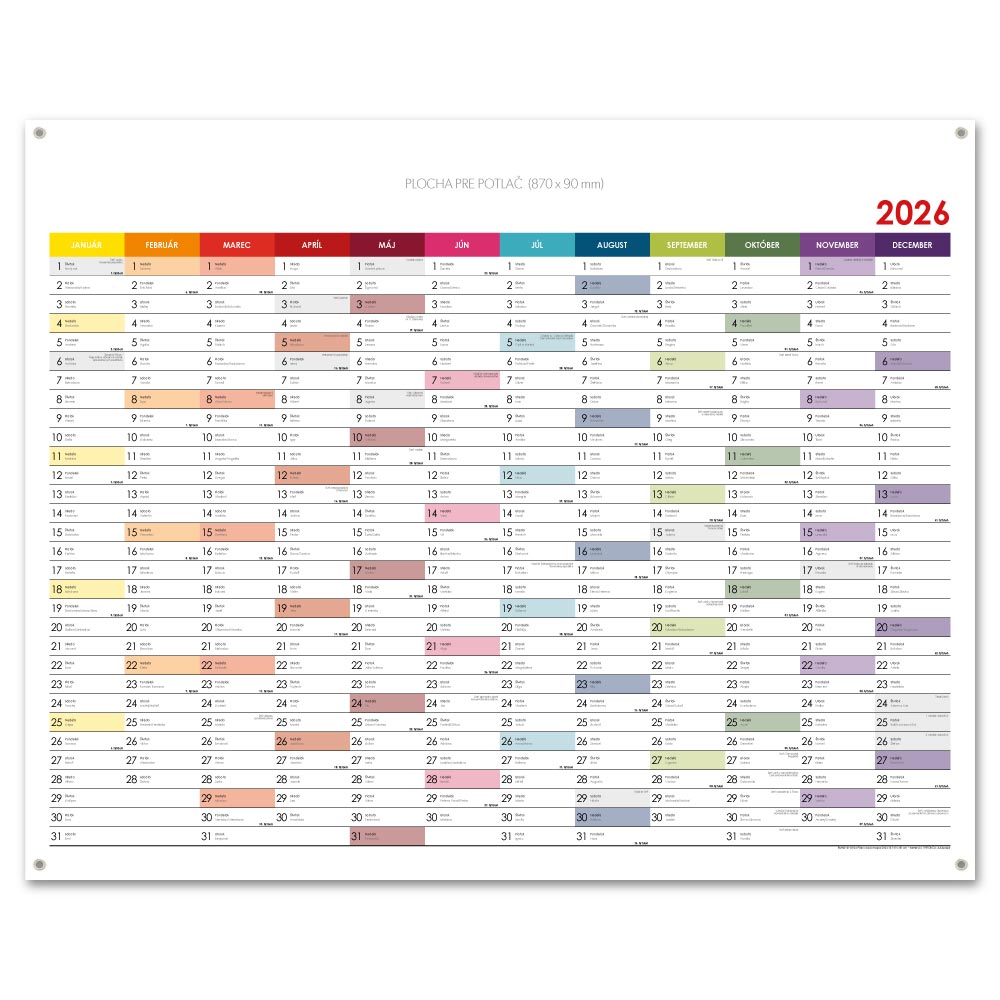 Nástenná plánovacia mapa 2026 SK s očkami na zavesenie - 100 x 80 cm - farebná